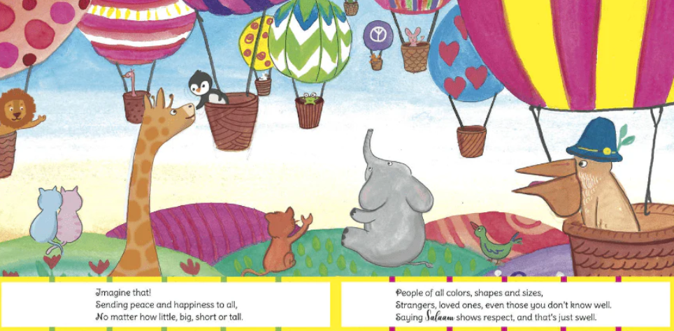 A greeting is an exchange between people that is perhaps one of the earliest forms of communication learned by children. This rhyming children’s book about the Arabic salutation of Salaam is a fun introduction to the concept of peace, for even the youngest of readers. A book that fosters diversity and inclusiveness!